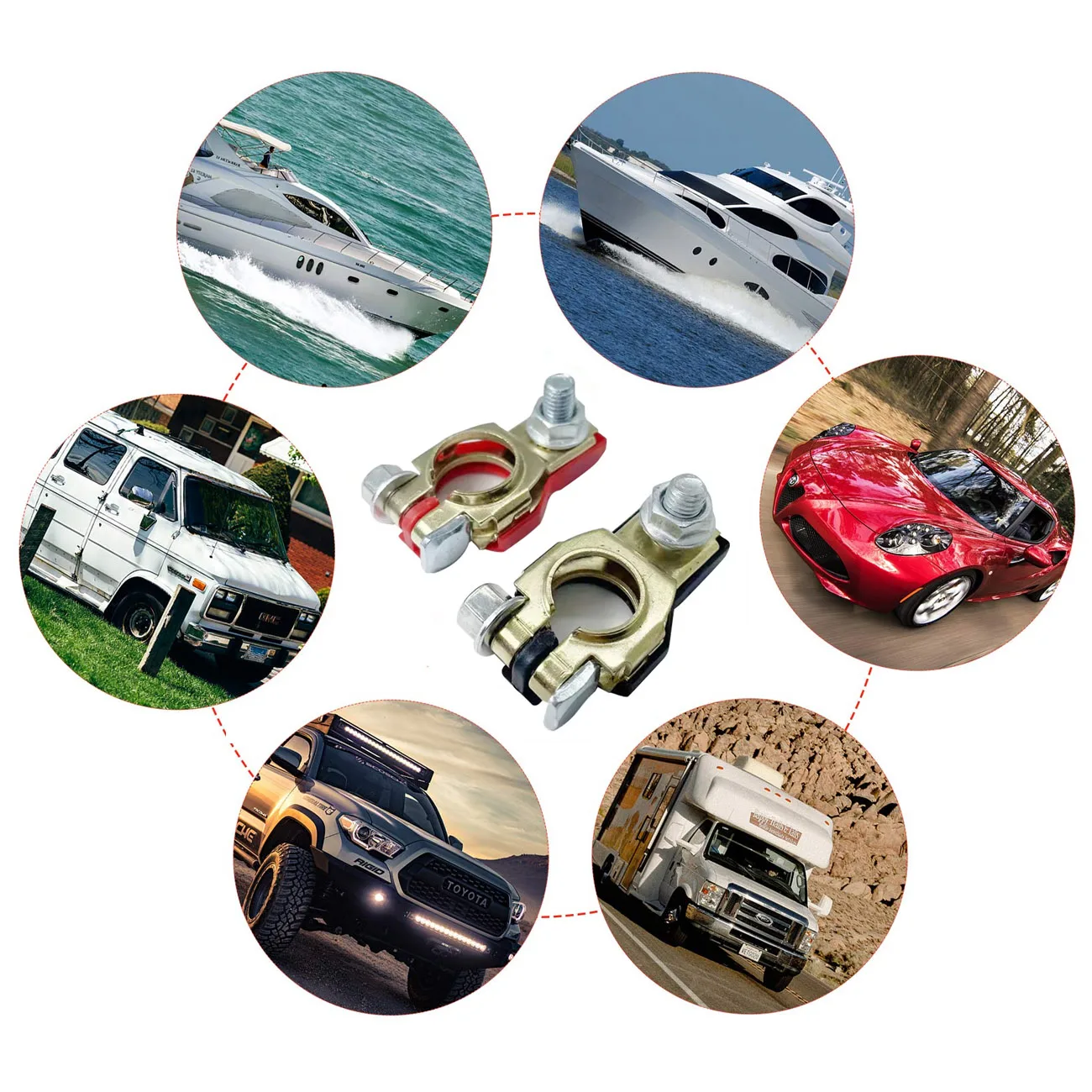 【WIDE APPLICATION】The battery terminal connectors can be used for Trailer, Winch, Truck, Tractor, Jeep, RV, Cars, Vans, Caravan, Boat, etc.