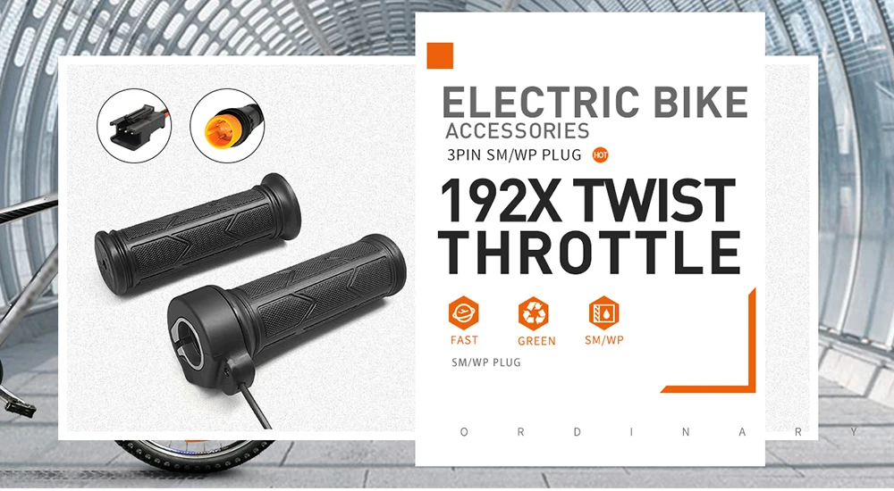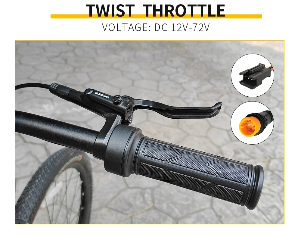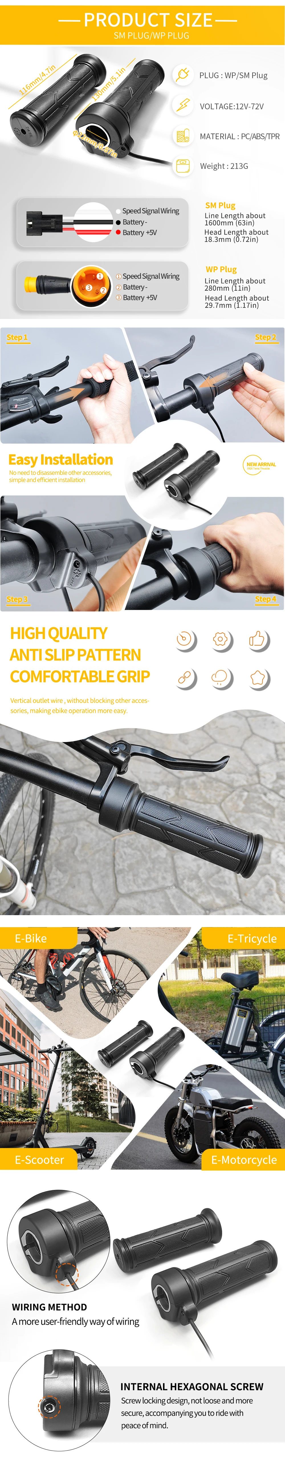 WUXING 192X Full Twist Throttle Electric Bicycle Right Handle Throttle Waterproof/Sm Connector for E Bikes or Electric Scooter